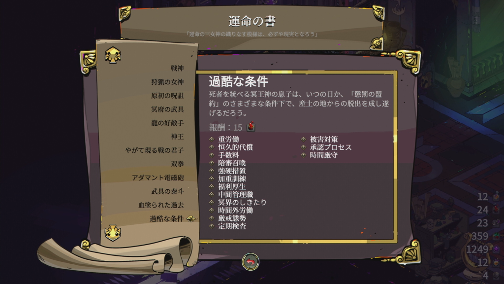 | 宿命の説得 | 功徳・カロンの泉の品揃えを変えるサイコロ +1(石榴での強化にも使用可) |