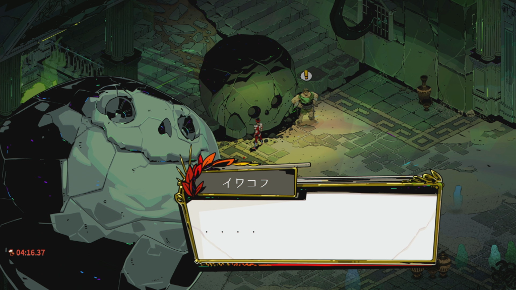 - ハデス、メガイラと話し、シシュポスの話題を出す。