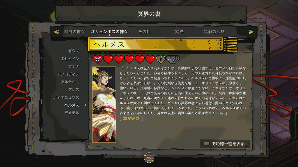 | 🏆 博識家 | 冥界の書の「オリュンポスの神々」の項目をすべて解放する |