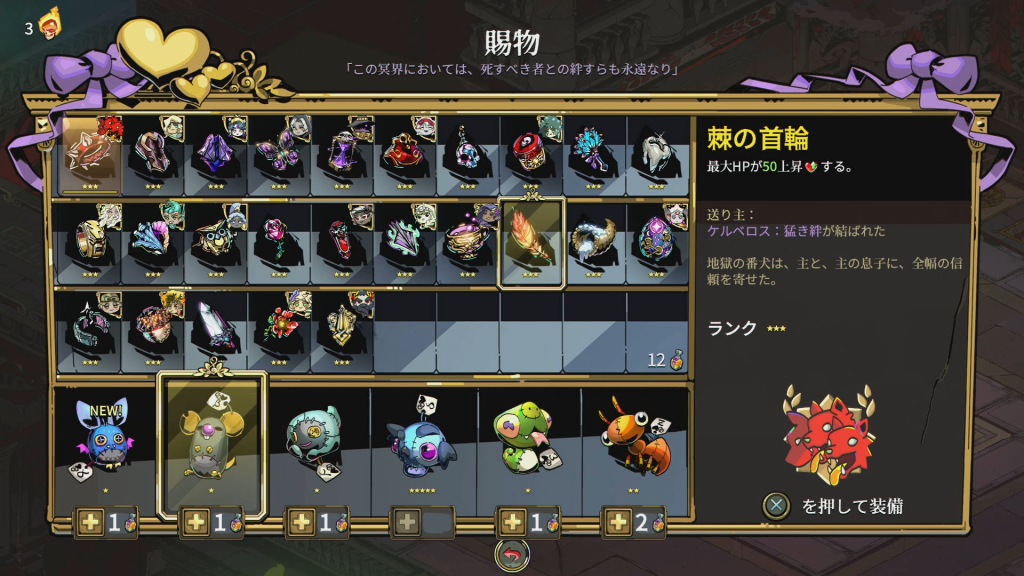 | 🏆 三つ首の愛犬 | ケルベロスを10回なでる |