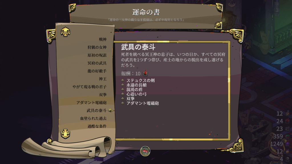 | 🏆 武具蒐集家 | 冥府の武具を全種類解放する |