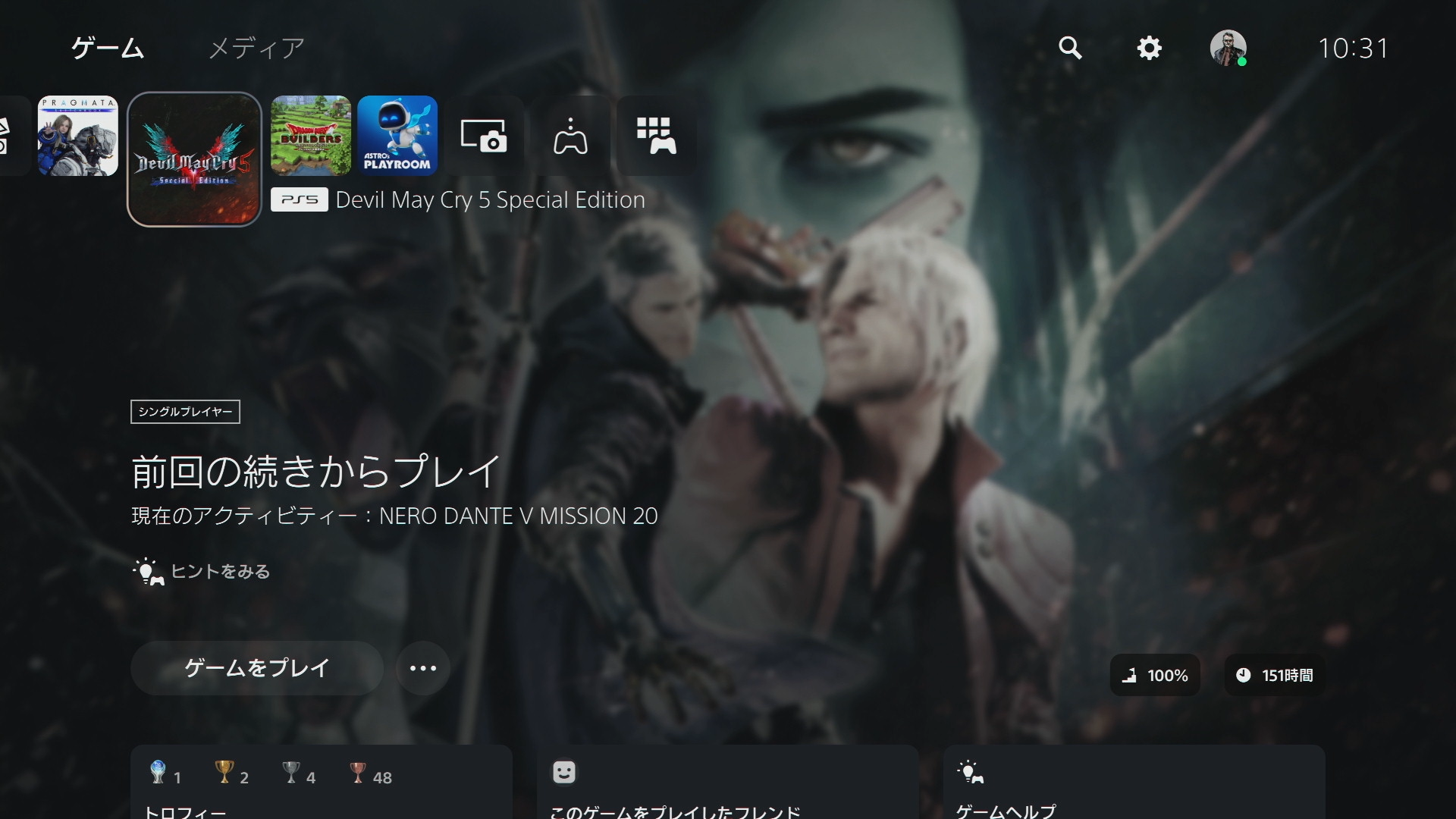 - 文句なしの偉業 NERO/DANTE/V GAMEの全ミッションを全ての難易度でSランク獲得してクリアする(HEAVEN OR HELL、LEGENDARY DARK KNIGHTを除く)